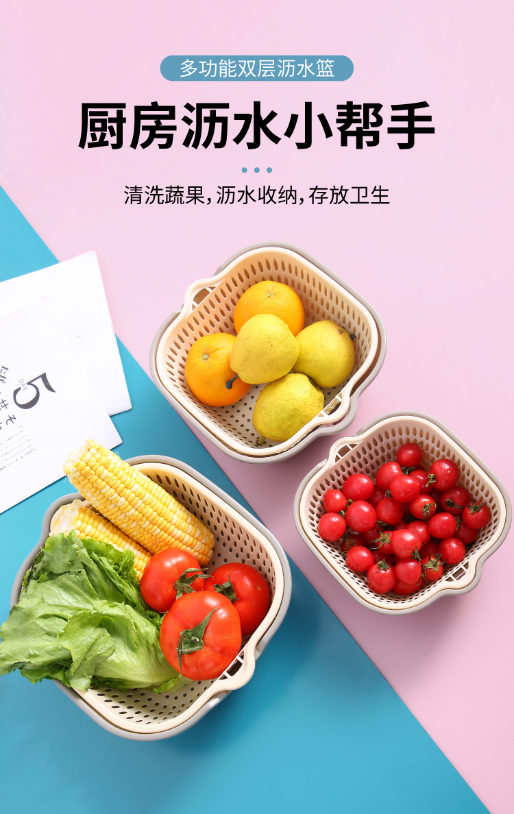 新款双层沥水篮洗菜篮子镂空洗菜果蔬厨房洗菜盆日用水果篮子家用