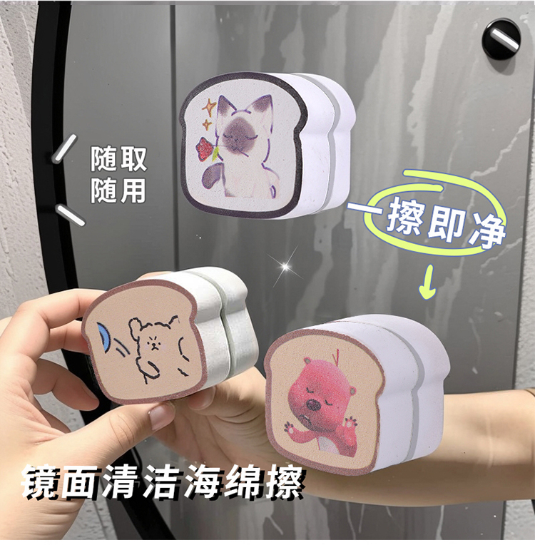 镜面擦线条小狗清洁海绵浴室玻璃镜子水龙头魔力擦去污不留痕神器