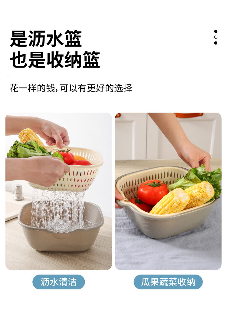 双层洗菜盆沥水篮水果盘客厅家用六件套厨房洗水果篮子淘菜篓子