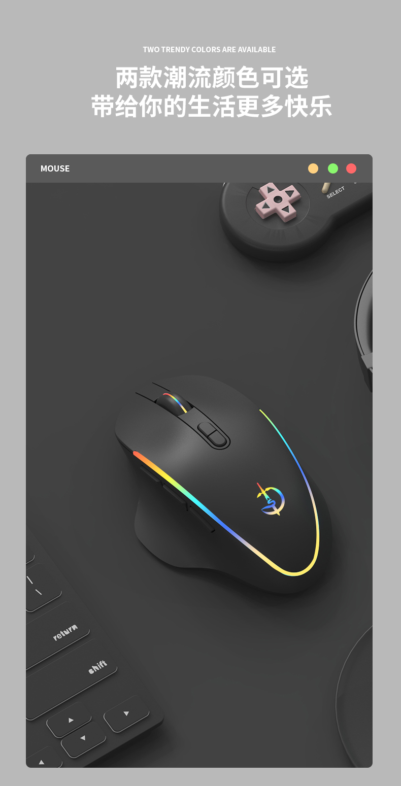 • 商品名称:无线鼠标静音可充电式RGB灯效游戏电竞适用小米联想华为苹果戴尔