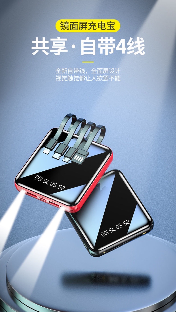 • 商品名称:充电宝20000毫安自带线三合一超薄小巧便携迷你快充移动电源