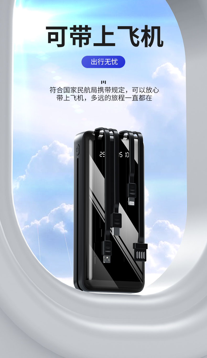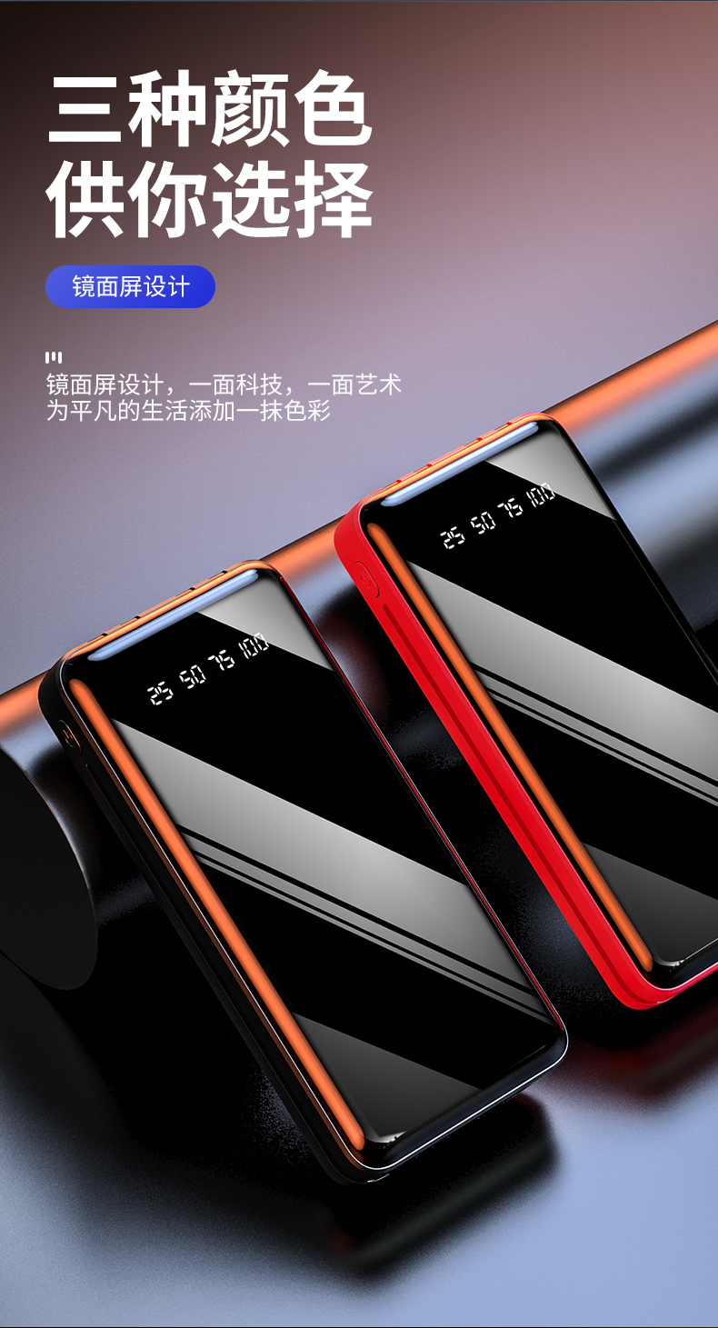 • 商品名称:原装正品20000毫安快充大容量充电宝LED显示屏自带四线超薄便携3