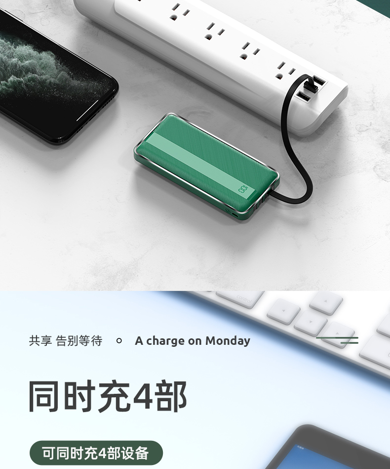 • 商品名称:充电宝10000毫安自带线超薄大容量小巧便携快充闪充移动电源适用苹果华为小米手机冲专用石墨1000000超大量稀