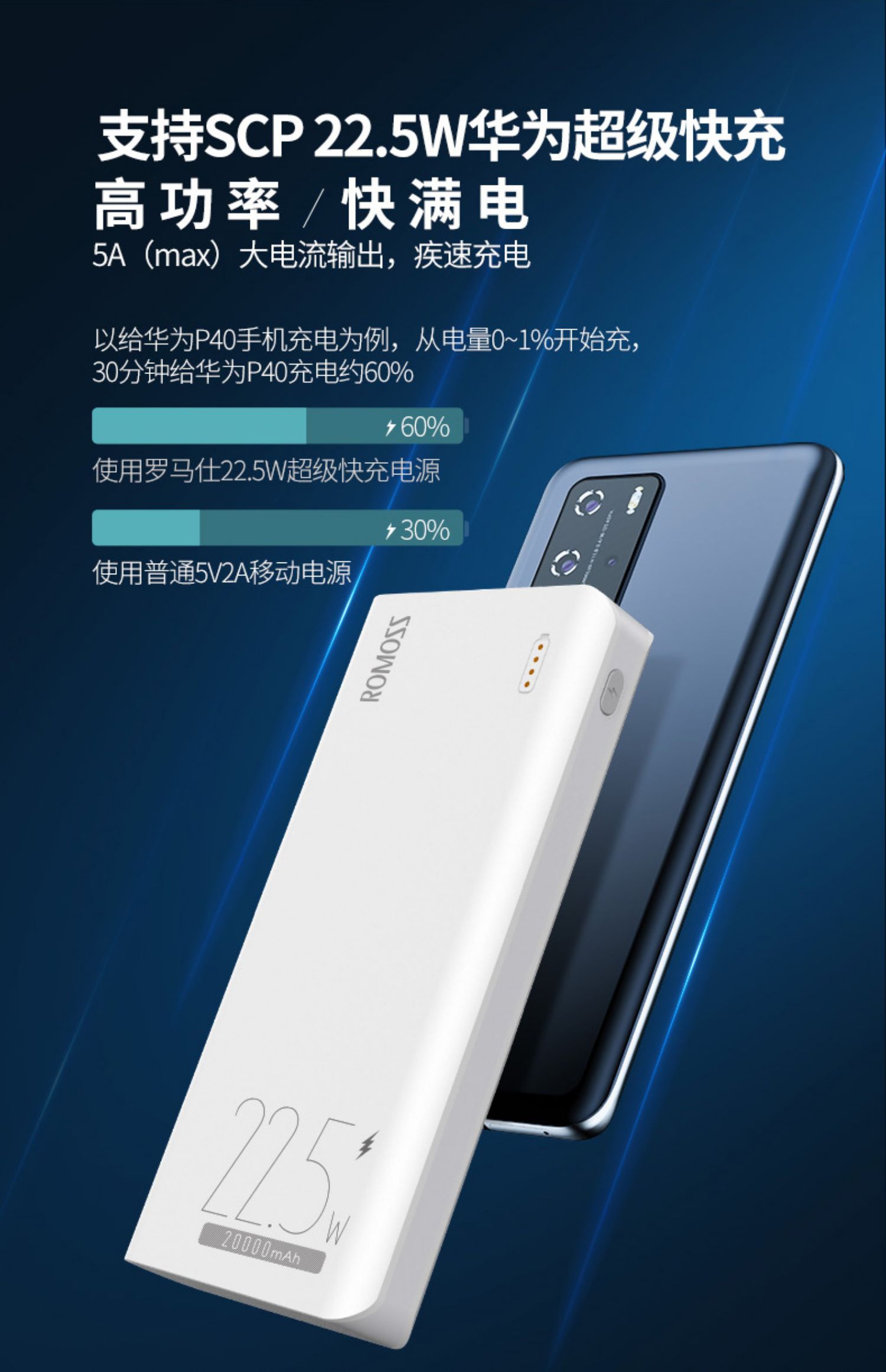 • 商品名称:罗马仕20000m毫安时充电宝大容量22.5W双向快充便携手机适用小米华为苹果冲移动电源罗马仕正品2万mAh