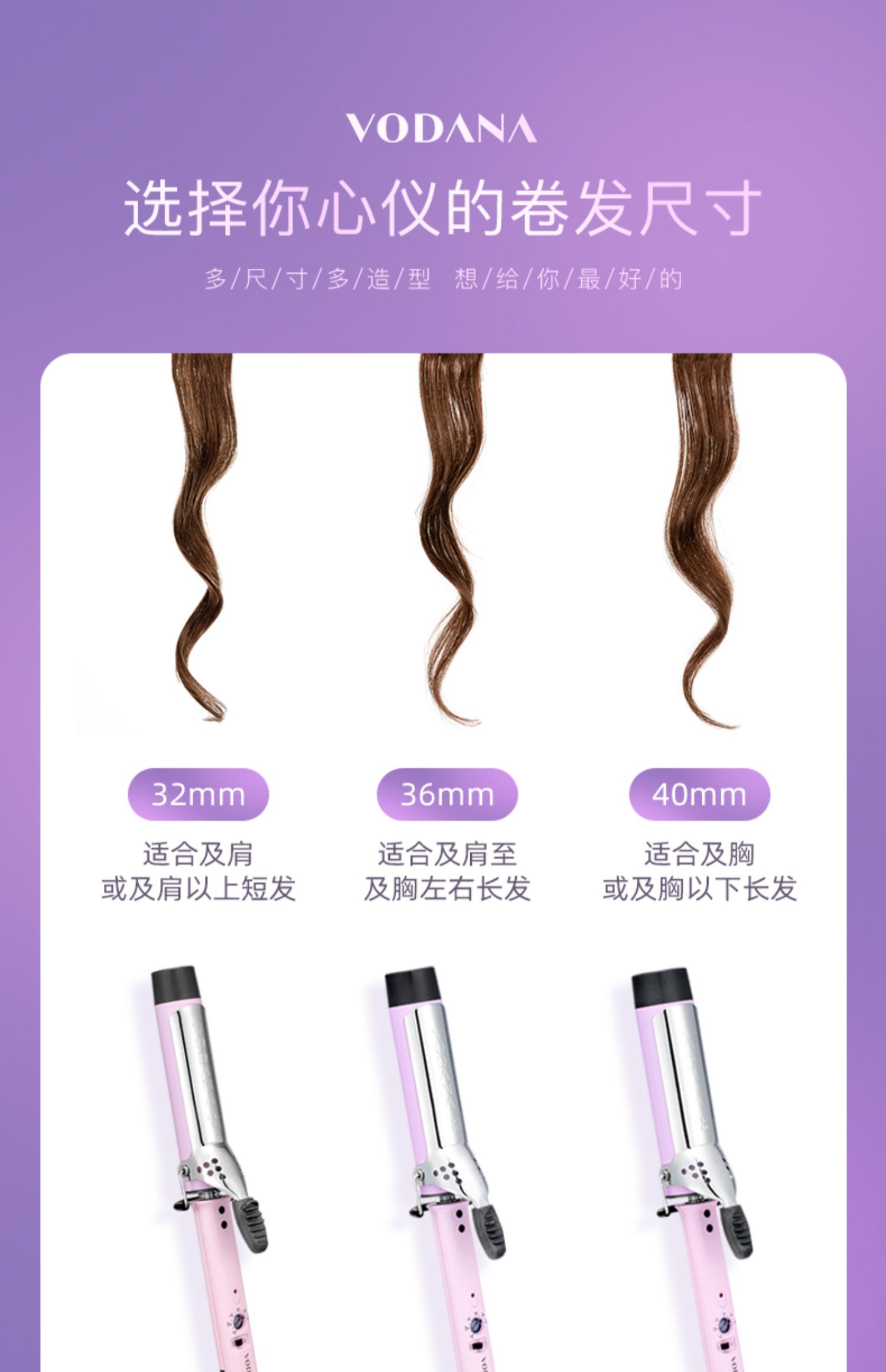 • 商品名称:韩国VODANA卷发棒36mm大波浪水波纹恒温陶瓷釉护发不伤发家用卷棒