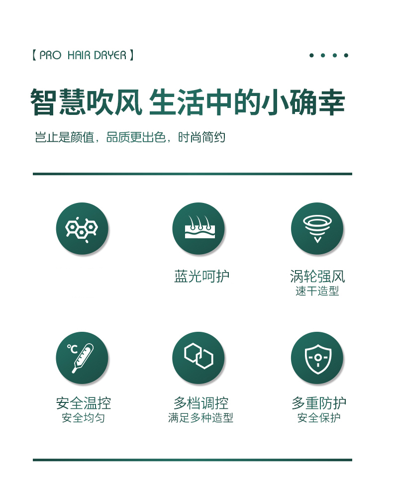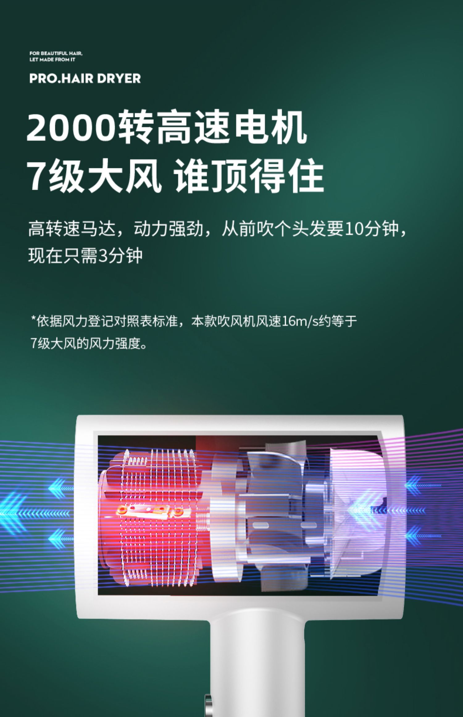 • 商品名称:曼吉斯电吹风机家用大小功率学生宿舍用速干冷热不伤发吹风筒护发