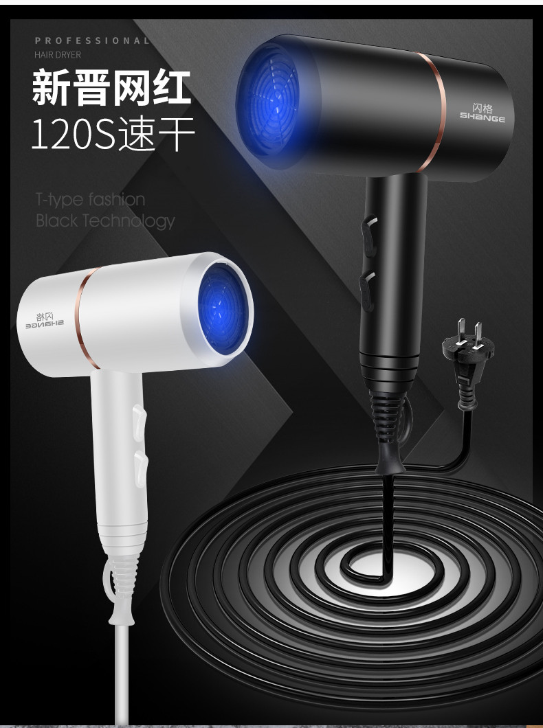 • 商品名称:闪格电吹风机家用负离子护发大风力宿舍学生发廊专用冷热不伤发筒