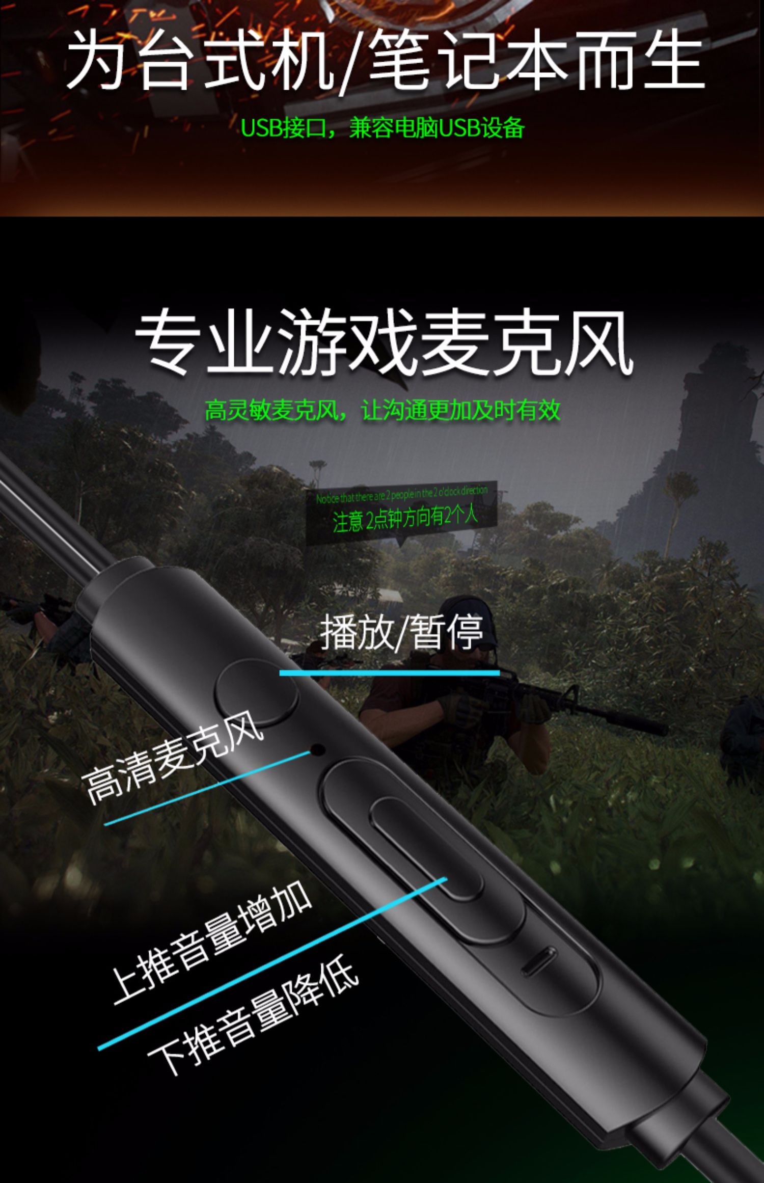 • 商品名称:电脑耳机入耳式USB接口有线带麦克风U口cf网吧网咖专用电竞csgo穿越火线游戏吃鸡耳塞网鱼网咖pc台式机用耳麦