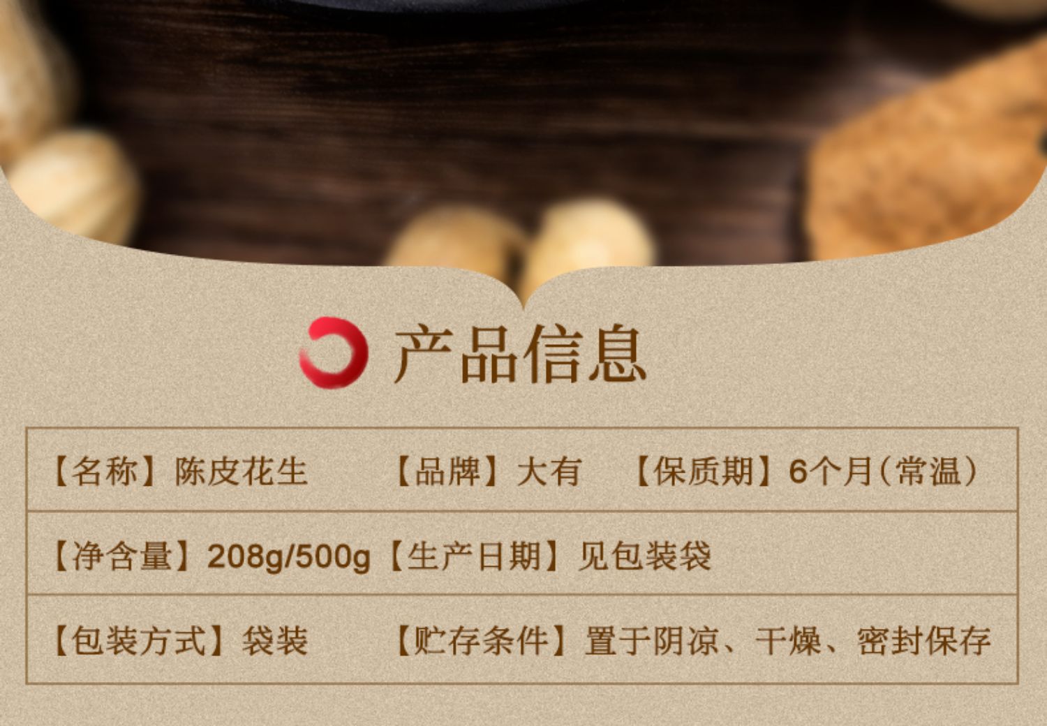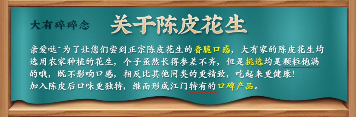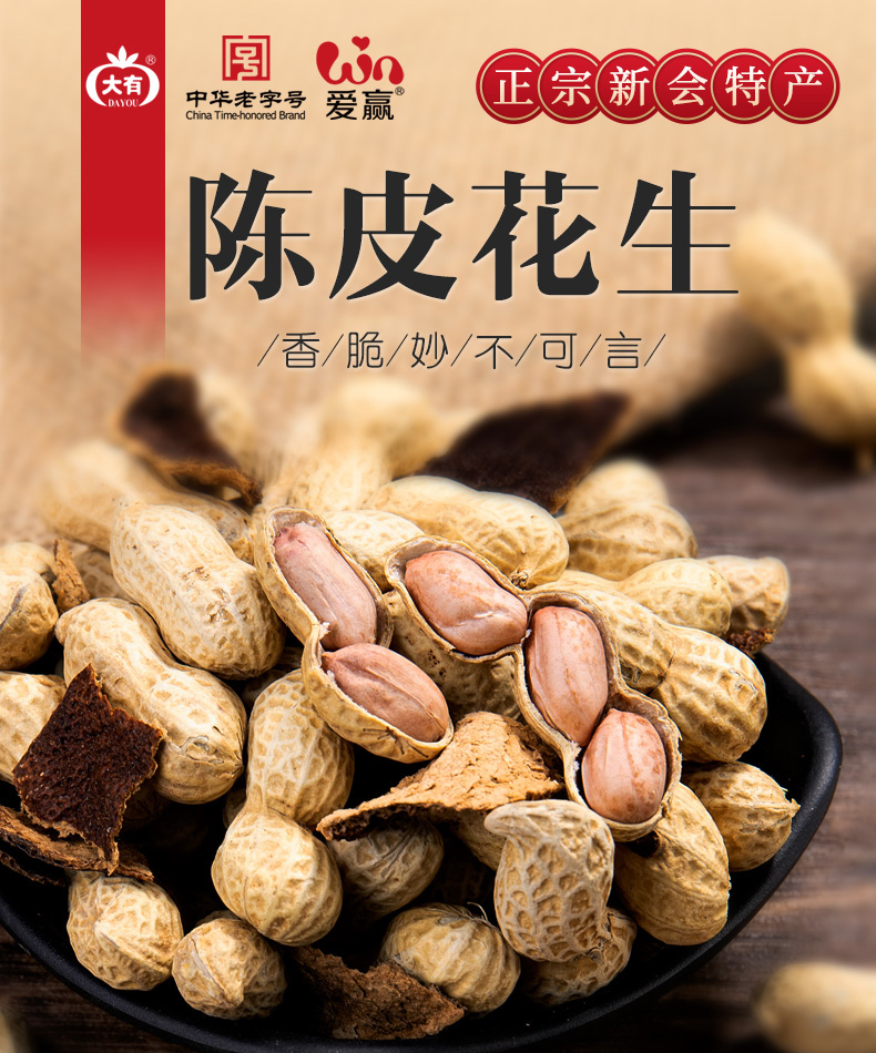 • 商品名称:大有陈皮花生500g广东江门新会特产咸干花生零食水煮干花生带壳
