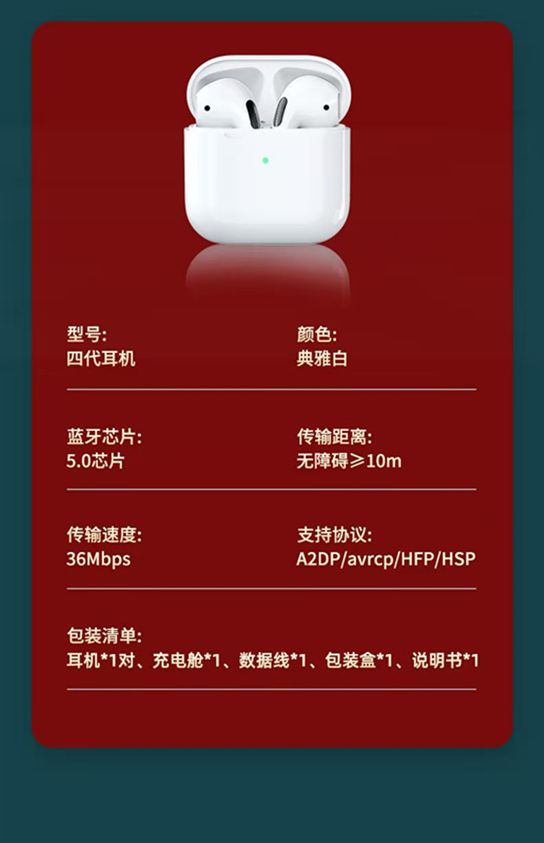 • 商品名称:原装正品4代华强北降噪蓝牙耳机适用vivo华为oppo苹果安卓通用14