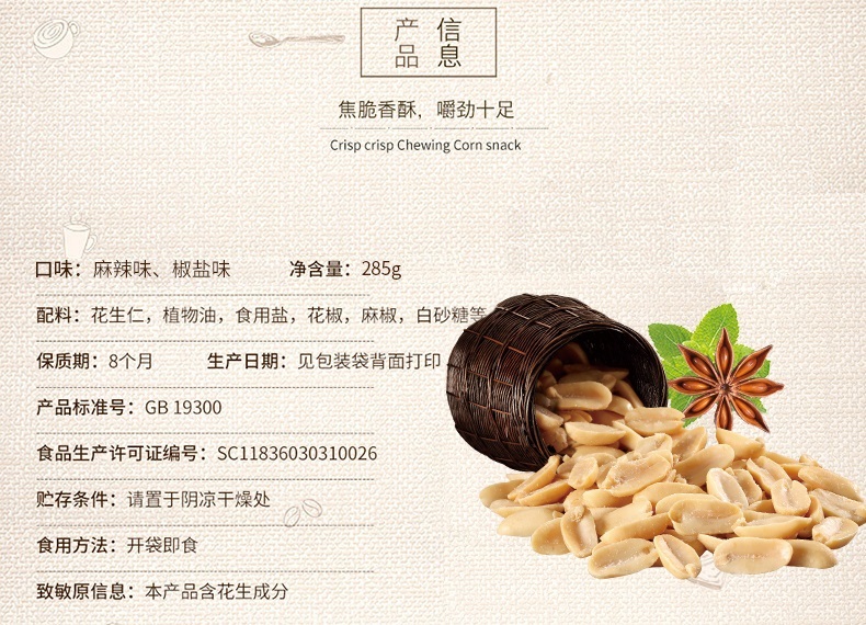 • 商品名称:甘源椒盐麻辣花生500g小包休闲坚果零食炒货下酒小吃多味花生米