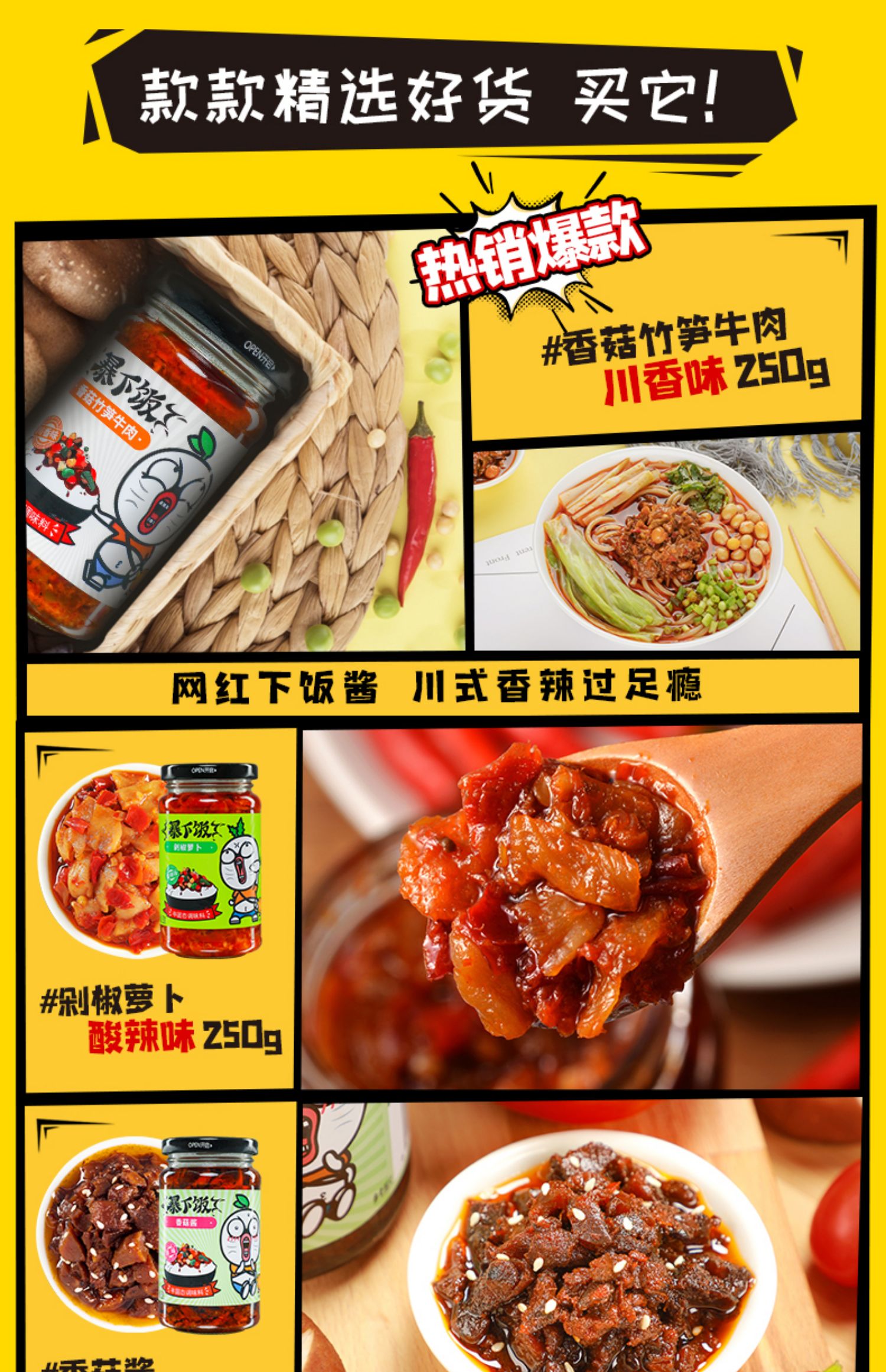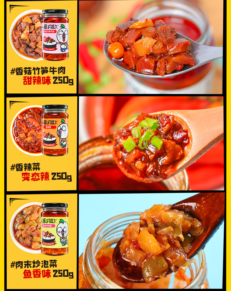 • 商品名称:吉香居牛肉酱拌面酱暴下饭菜拌饭酱香菇酱辣酱辣椒酱下饭酱250g